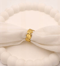The Golden Heart Adjustable Ring is a delicate and meaningful piece. It features a row of polished golden hearts that slightly overlap, creating a beautiful and continuous band of love. The subtle hammered texture on the hearts adds a handcrafted, unique sparkle to this feminine design. Its open-ended style makes it slightly adjustable for a comfortable fit.